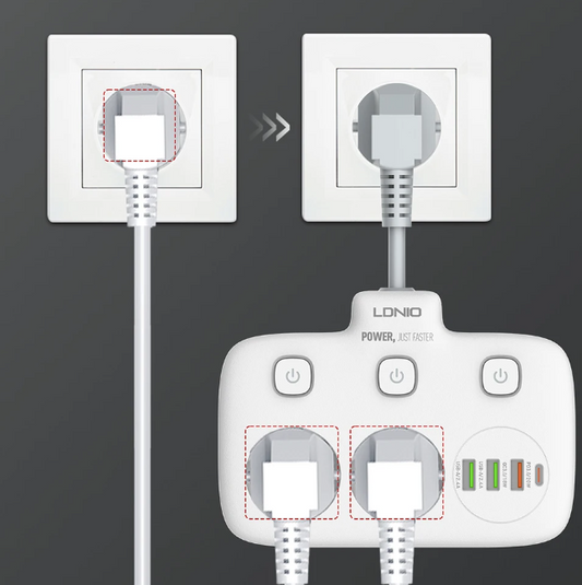 Több aljzat 2 AC aljzattal, 3x USB, USB-C
