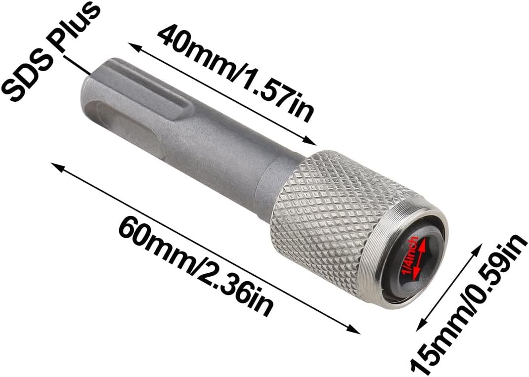 - [Egyszerű átalakítás] Az SDS Plus 1/4"-es adapterrel könnyedén rögzíthet egy 6,35 mm-es (1/4") hatszögletű fúrót a fúrószárhoz, így kényelmes megoldást kínál különféle fúrási és rögzítési feladatokhoz.