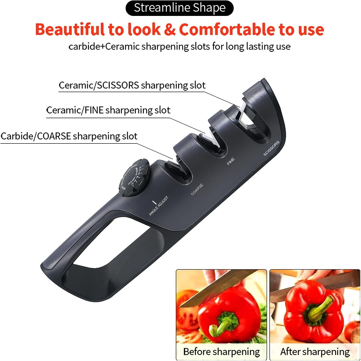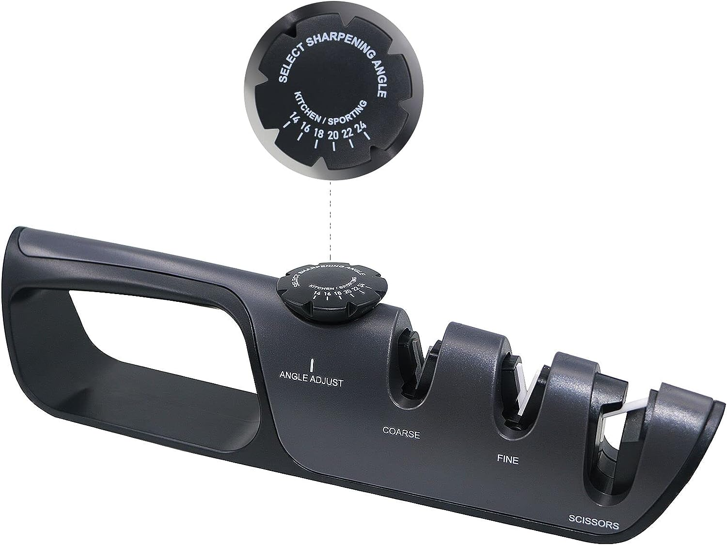 - Beépített szögbeállító gomb professzionális késélezőhöz: Szögbeállító gomb 14-24 fok között, így beállíthatja a penge megfelelő szögét, hogy a különböző méretű, vastagságú és élű késeket a megfelelő élre élesítse.
