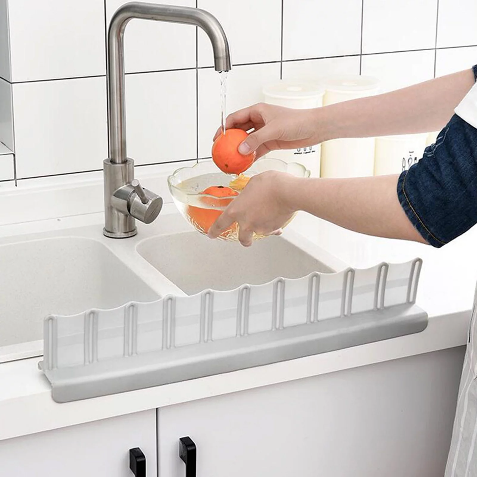 - Egyedi forma hullámokkal, elegáns vonalakkal, gyönyörű és praktikus. Hatékonyan megakadályozza, hogy a víz a ruhákra fröccsenjen vagy a padlóra folyjon.