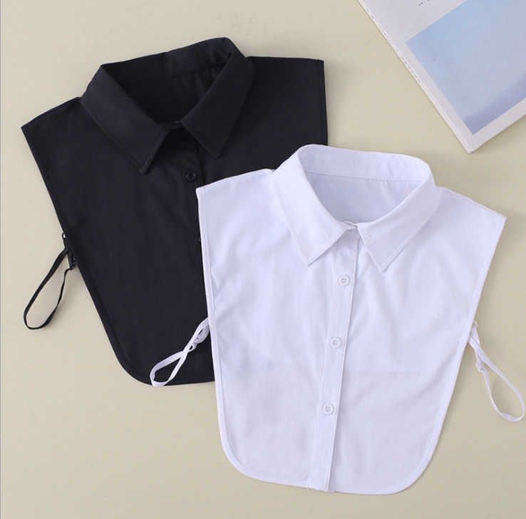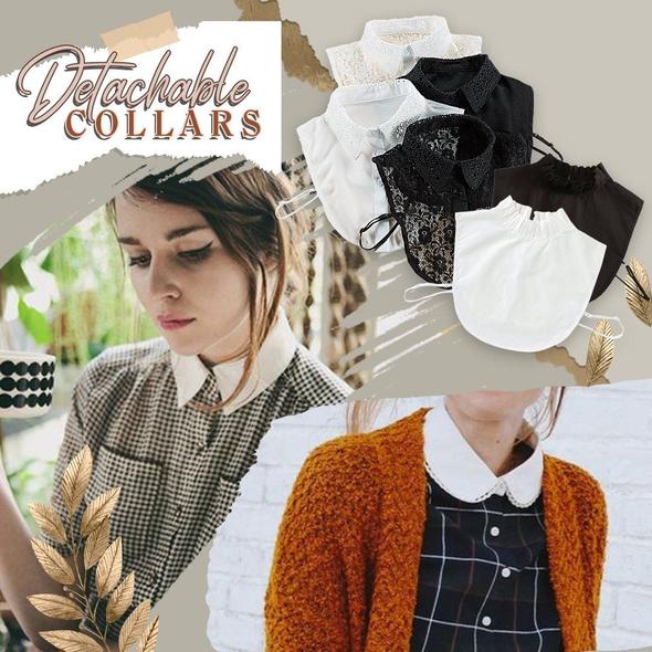 - Levehető nyakörvek - Pár valósághű gombos gallérral rendelkezik, amelyeket könnyedén rögzíthet és eltávolíthat a ruhájára.