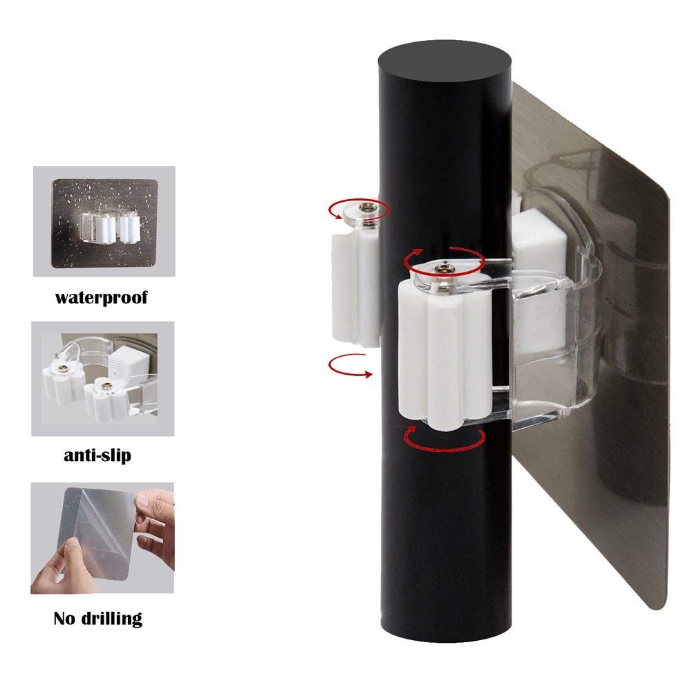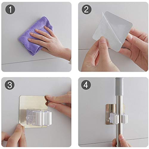 【KÖNNYŰ TELEPÍTÉS】 A seprűfelmosó tartó hátulján ragasztó található, nem kell lyukakat fúrni a felszereléshez, és nem kell attól tartania, hogy a matricák megsértik a falat vagy a mennyezetet. Használat előtt tisztítsa meg a falfelületet, ragassza fel a felmosó tartót, nyomja meg 10 másodpercig, hogy kinyomja a levegőt, és 24 óra elteltével használhatja az erős és tartós tartót.