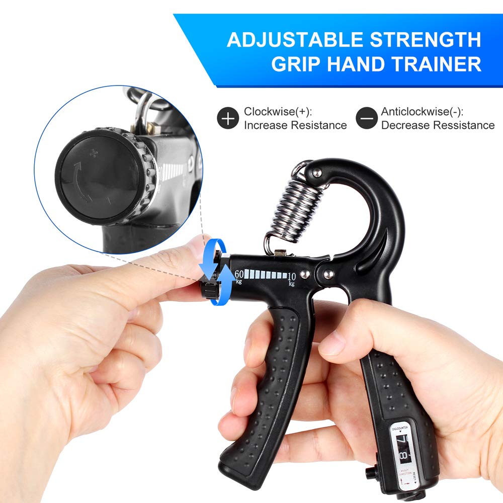 - MINDENKINEK MEGFELELŐ: Ergonómikus markolaterősítőnk puha gumi markolattal kényelmes és csúszásmentes fogást biztosít hosszú ideig. Az ellenállás 22-132 font (10-60 kg) között van, ideális különböző erősségű férfiak, nők, idősek és tinédzserek számára