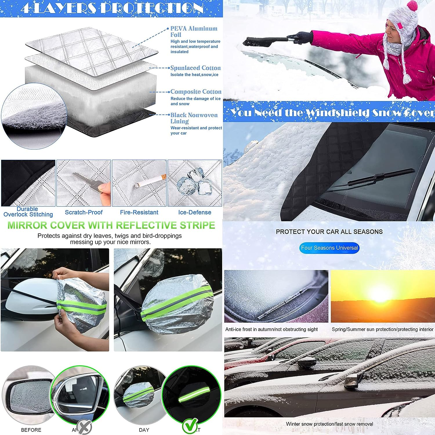 - ❄【Egész éves használatra és minden időjárási viszonyok között használható】 Alumínium fólia felületi réteg és kiváló minőségű égésgátló pamut belsejében, hogy az autó szélvédőjét távol tartsa a fagytól és a portól tavasszal, a hótól és a jégtől télen, valamint a nap UV sugaraitól nyáron , a levelek ősszel.