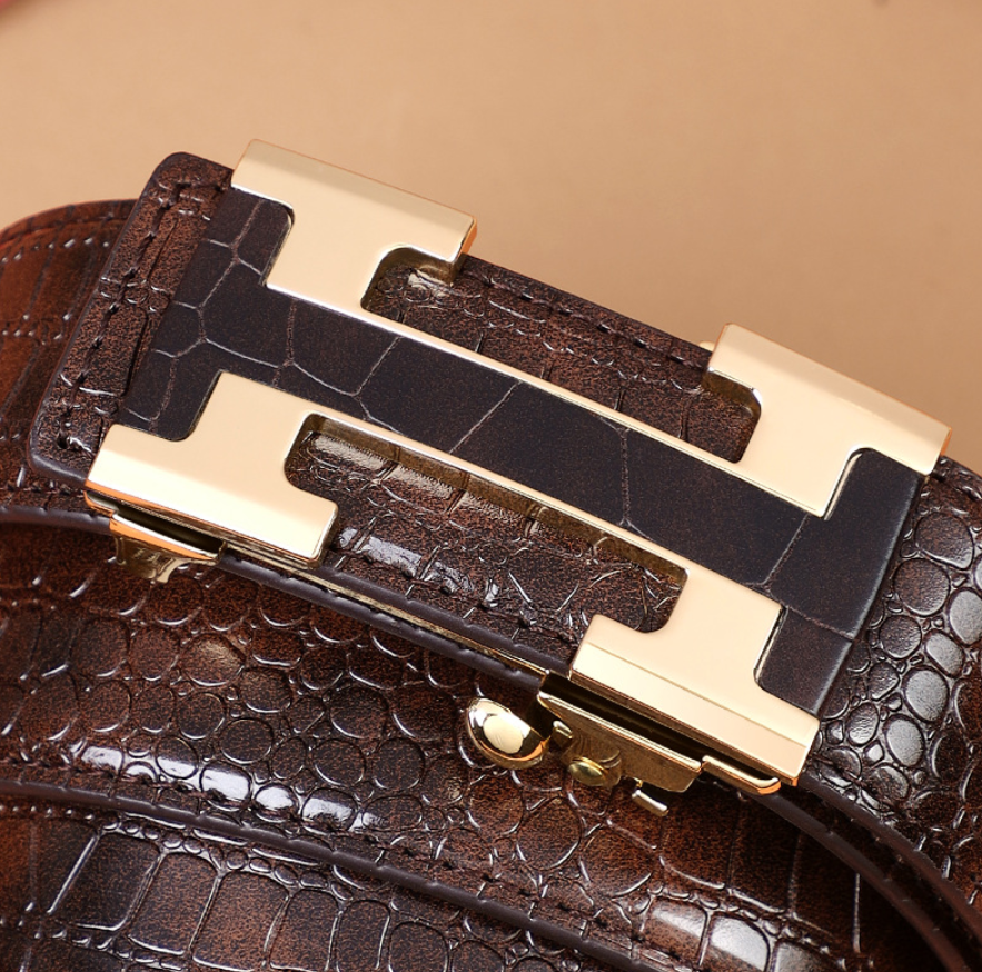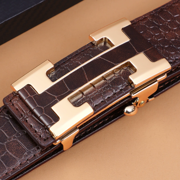 Valódi marhabőrből, krokodilmintás textúrával készült, ez az öv tartós és prémium megjelenést kínál, tökéletes üzleti vagy elegáns hétköznapi öltözékhez.