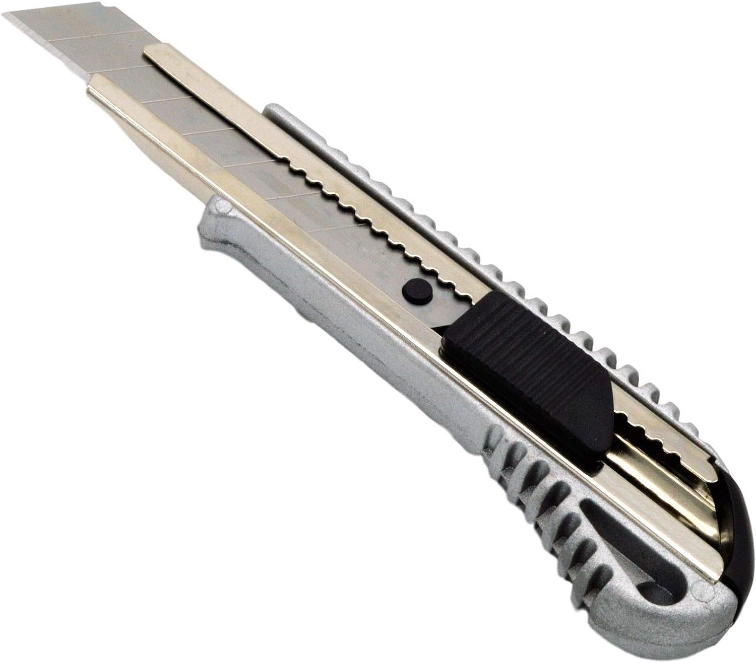 - Vágó 18 mm széles pengével. Nagyon hasznos mechanikai feladatoknál és barkácsolási tevékenységeknél. A fém vezető és test biztosítja a szerszám hosszú élettartamát. Csúszásmentes textúrájának és ergonomikus formájának köszönhetően a kés jól illeszkedik a kézbe, ami biztosítja a biztonságot és a kényelmet a használat során.
