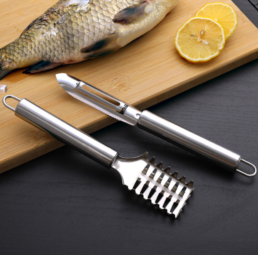 - Kényelmes - A halak tisztítására szolgáló pikkely alakú kialakítás nagyon gyorsan eltávolítja a pikkelyeket, és nem éles kialakításának köszönhetően megelőzi a vágási baleseteket.