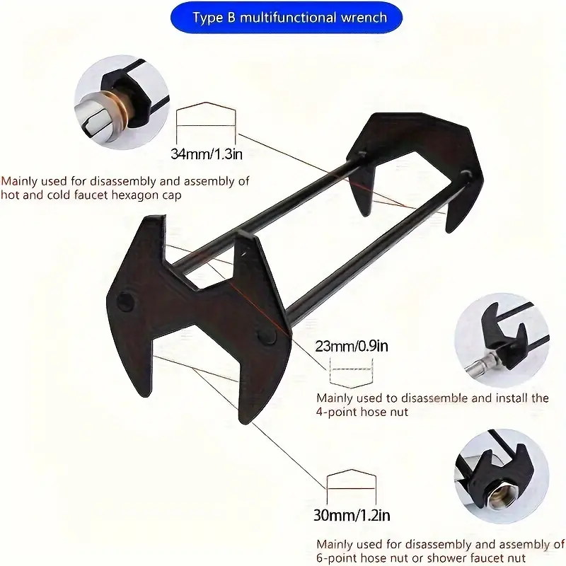 A FlexiWrench™ készlet két többcélú villáskulcsot tartalmaz, amelyek célja a vízvezeték-szerelési és karbantartási feladatok egyszerűsítése. Ez a készlet ideális csaptelepek, tömlők és egyéb vízvezeték-kiegészítők beszereléséhez, sokoldalúságot és hatékonyságot biztosítva bármilyen projektben.