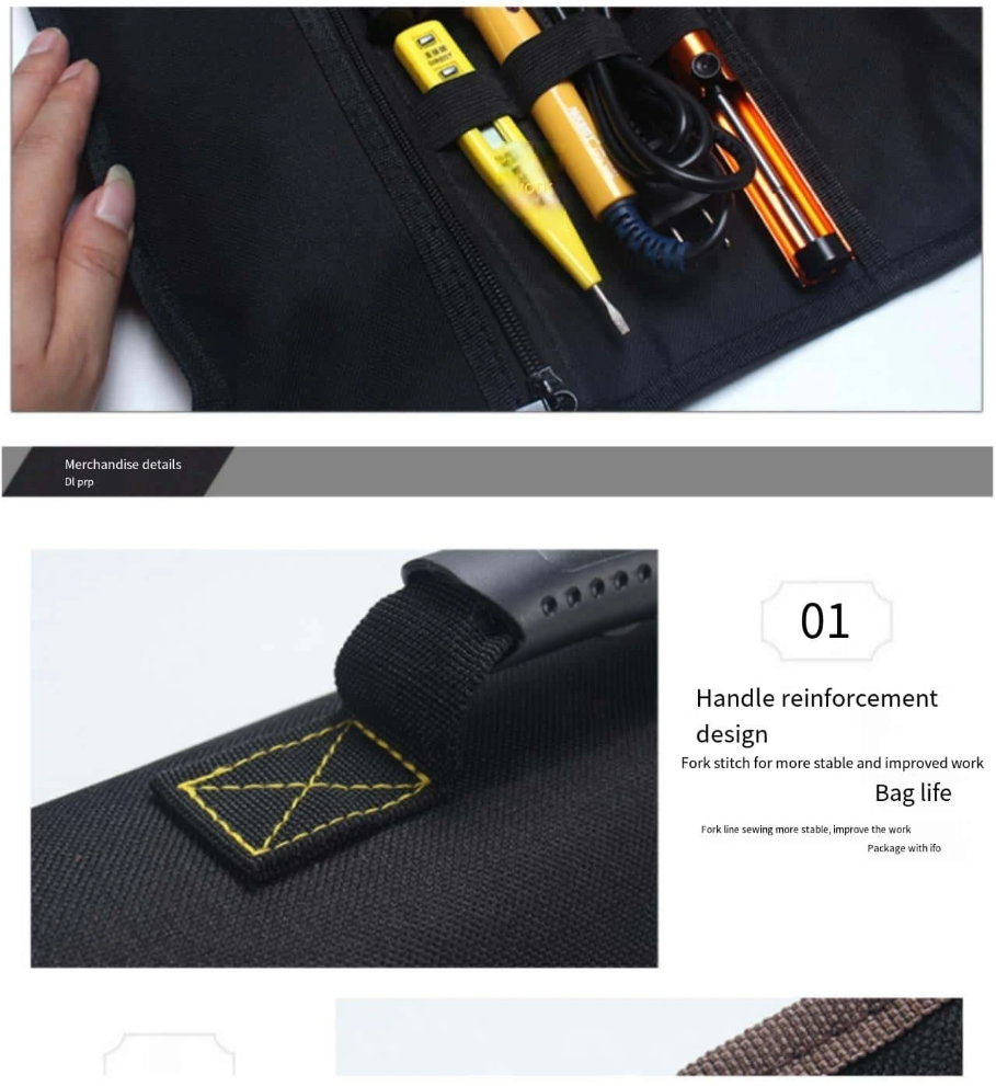 Tartós anyag: Szerszámtáskánk vízálló 600D Canvas anyagból készült, ami nagyon erős és tartós, tökéletes kéziszerszámok és egyéb kis és közepes méretű tárgyak szállítására.