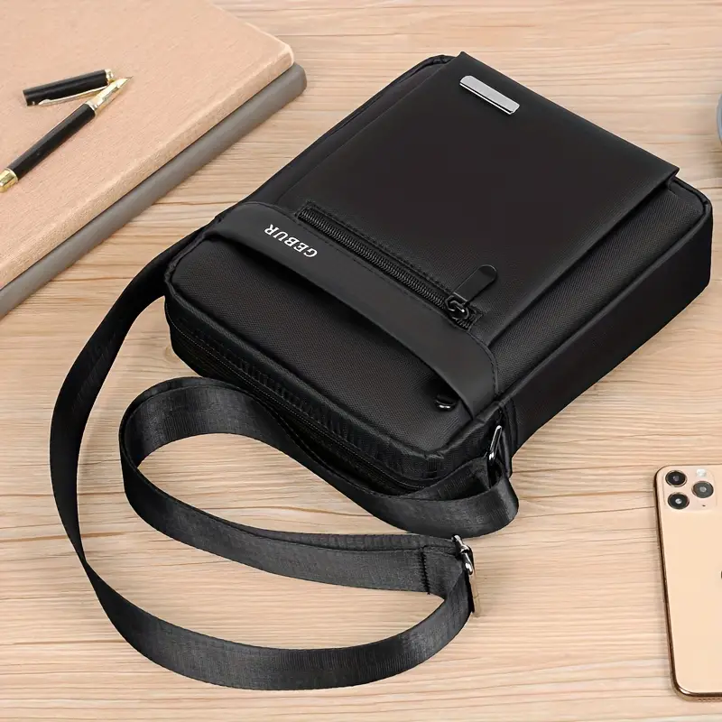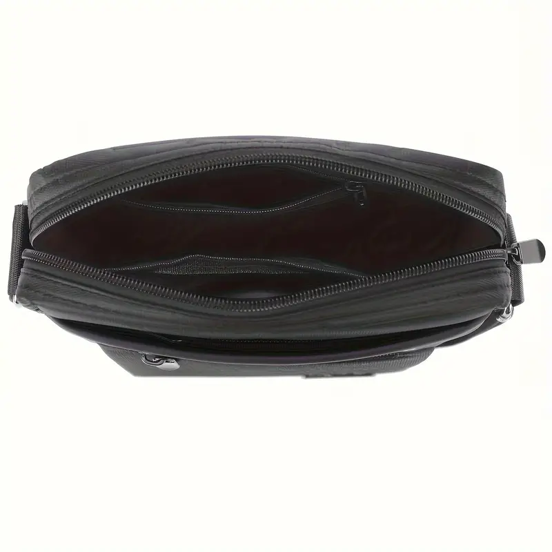 • A férfi válltáska felső fogantyúval és állítható pánttal rendelkezik, amely kényelmes és stílusos illeszkedést biztosít.