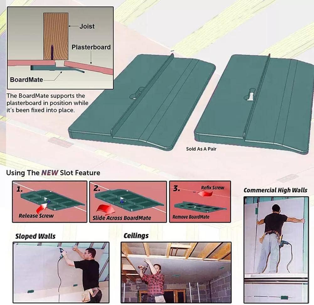 - Könnyen felszerelhető: amíg a gipsz fali tábla a falaphoz van rögzítve, addig a segédlap is rögzíthető. Ezután helyezze a gipszkartont a segédlapra, tartsa az egyik kezével, és rögzítse a másik kezével.