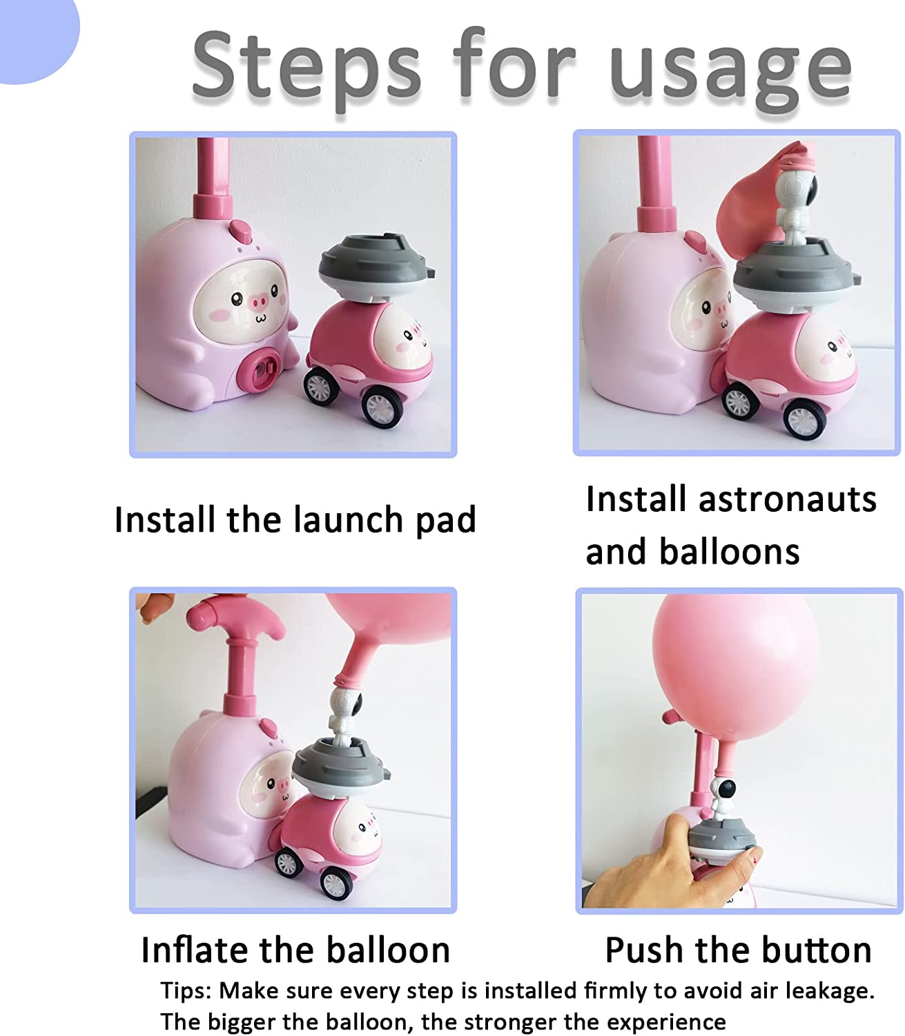 - Többfunkciós kialakítás: nincs szükség áramellátásra, aerodinamikus súrlódás a játékok működtetéséhez, egyérintéses gomb az autó aktiválásához, hogy előre tudjon futni, hordozható ballonpumpával és kilövővel, hogy a léggömb egyszerre repüljön. vonzó a gyerekek számára.