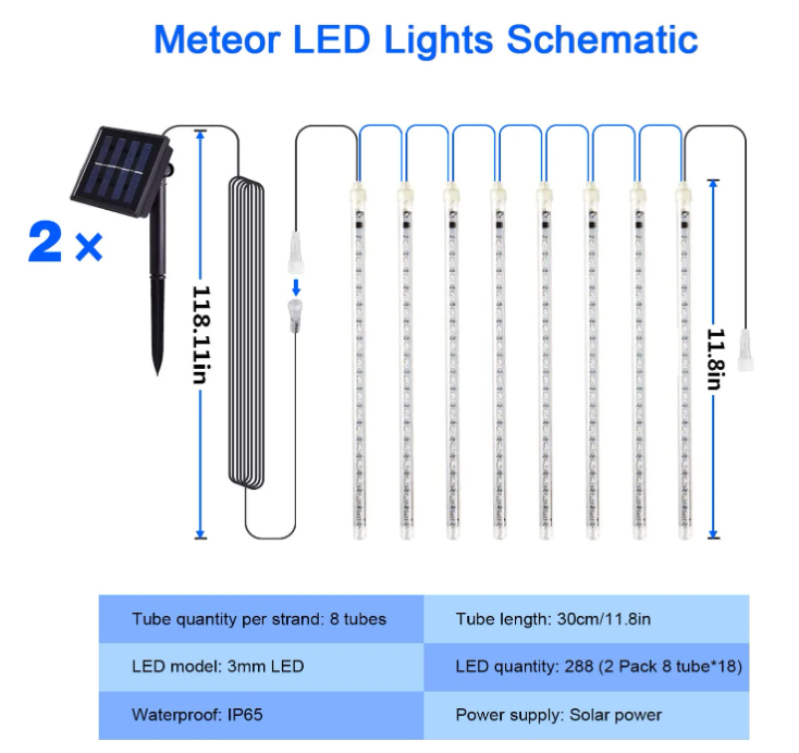 - Egyedi dizájn: 8 db 30 cm-es cső, 180 LED-es meteorzápor effektus romantikus esztétikával, az egyes izzók fénye egymás után és gyorsan ki- és bekapcsol, akár a meteorzápor vagy hóesés az éjszakai égbolton, csodálatos lépcsőzetes hatás a teraszra , kert, pázsit, fa, ünnepi díszek