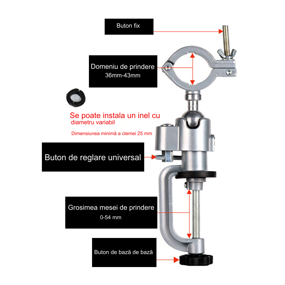 - Alumíniumötvözet öntvény, nagy merevség és könnyű súly. Acél csavarok és fogantyú biztosítja a tartósságot és a praktikusságot.