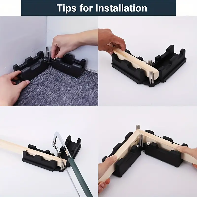 【2-AZ 1-BEN GÉR-MÉRŐ VÁGÓSZERSZÁM HATÉKONYSÁGA】 Mind a gérvágó vágási szög, mind a kész vágás mérhető, így nincs szükség több szerszám használatára, és elkerülhető a hibák a megfelelő szög átvitele a fűrészre.