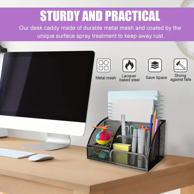 Prémium anyagokból készült: Ez az asztali rendszerező kiváló minőségű fémhálóból készült, festve a tartósság érdekében. A sima, sorjamentes felület kényelmes és karcálló használatot biztosít. A festék nem hámlik könnyen , a fém pedig védve van a rozsda ellen.