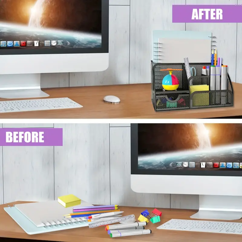 Tedd rendbe az íróasztalodat könnyedén: Ints búcsút a rendezetlen íróasztalnak! Könnyedén tárolhat tollakat, vonalzókat, ollót, könyveket, dokumentumokat, gemkapcsokat stb. egy helyen, mindent rendben tartva.