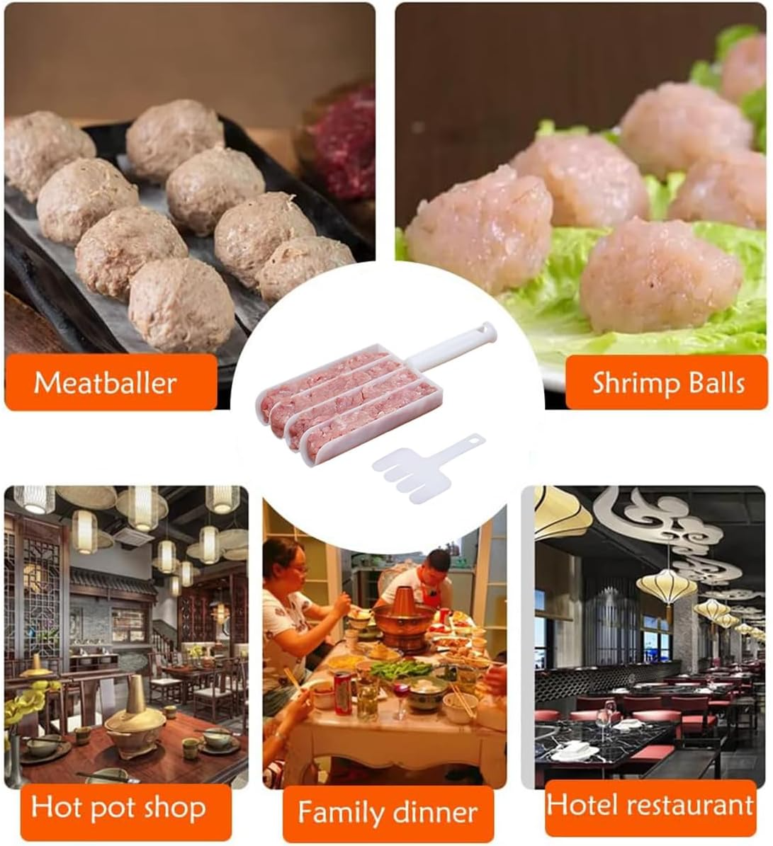 - 【 Különféle alkalmazások 】: A húsgombóc-készítő nemcsak húsgombócokhoz alkalmas, hanem halgolyók, garnélarák-tekercsek, marhahúsgombócok, zöldségfasírt- és fagylalt-fasírt készítésére is használható. Alkalmas étkezdékbe, fondü éttermekbe, szállodákba és gyorséttermekbe. Ezekkel a konyhai eszközökkel sütemények, sütemények, cukorkák és csokoládék is kikanalazhatók.