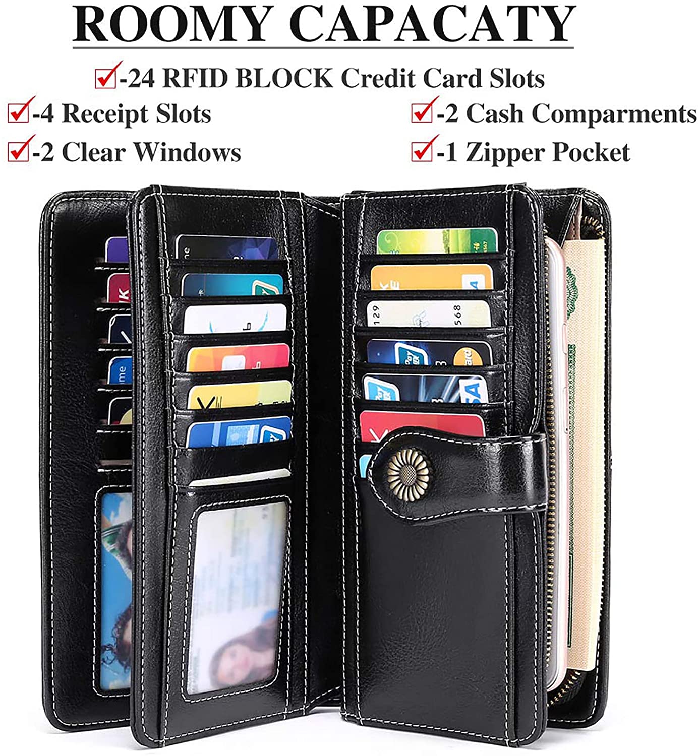 Női pénztárca RFID védelemmel Nagy kapacitású női pénztárca