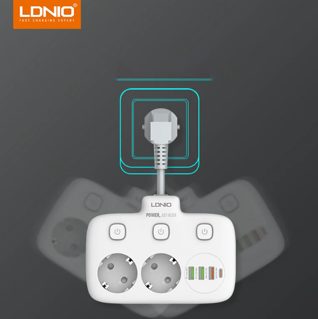 Ezzel a praktikus és stílusos multi-aljzattal akár 6 eszközt is tölthet egyszerre . Az LDNIO SE2435 tökéletes a rend fenntartására otthonában vagy irodájában, és a következőket kínálja: