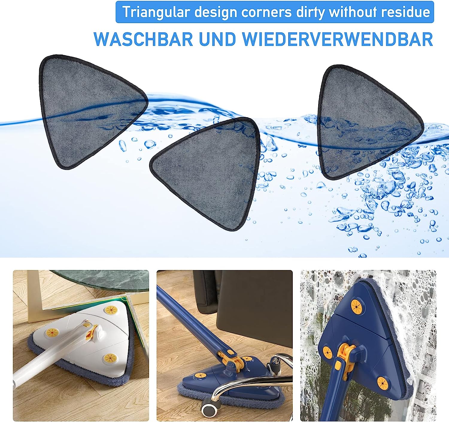 - Kompatibilis modellek: 360°-ban forgatható, háromszög alakú, állítható tisztítófelmosóhoz használható, és könnyen rögzíthető/leválasztható a 360°-ban forgatható, állítható tisztítófelmosóról. Ez megkönnyíti a tisztítást.