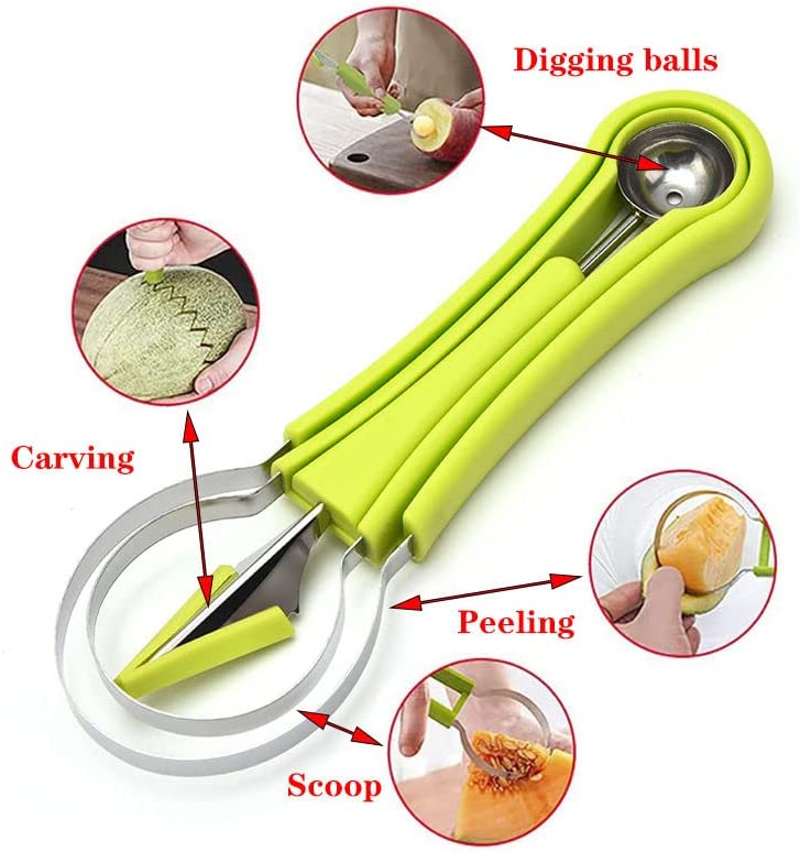 Gazdag stílusok: A csomagban 2 db dinnyekés, 1 db gyümölcsfaragókés és 1 db gyümölcs- és zöldséglapát található, melyek egy gyönyörű készlet, amelyet tetszés szerint használhatsz mindennapi életedben.