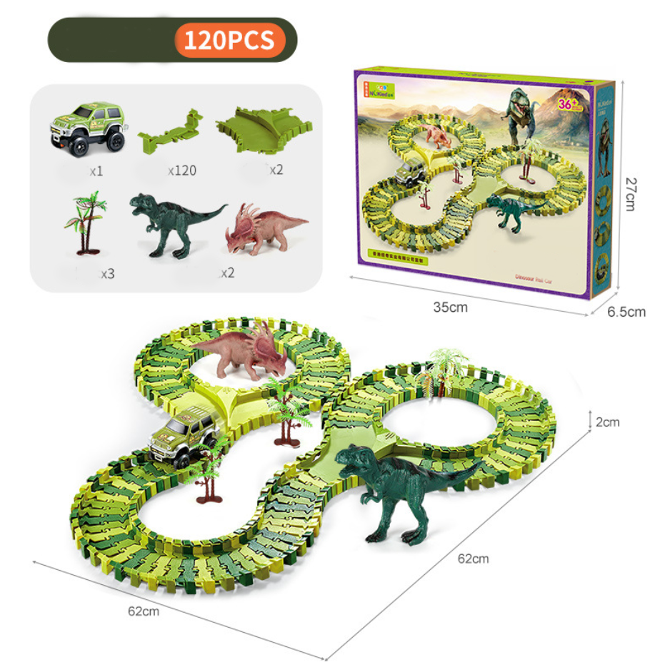 Ez a több száz pályadarabot és mintát tartalmazó dinoszauruszpálya-készlet lehetővé teszi, hogy gyermeke saját egyéni pályát építsen ívekkel, rámpákkal és alagutakkal, mindezt a dinoszauruszok korában!