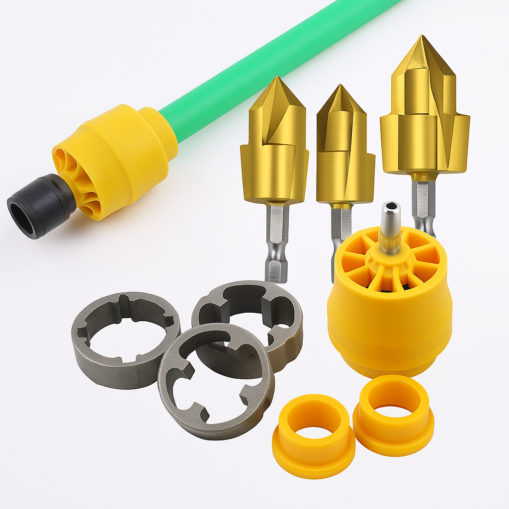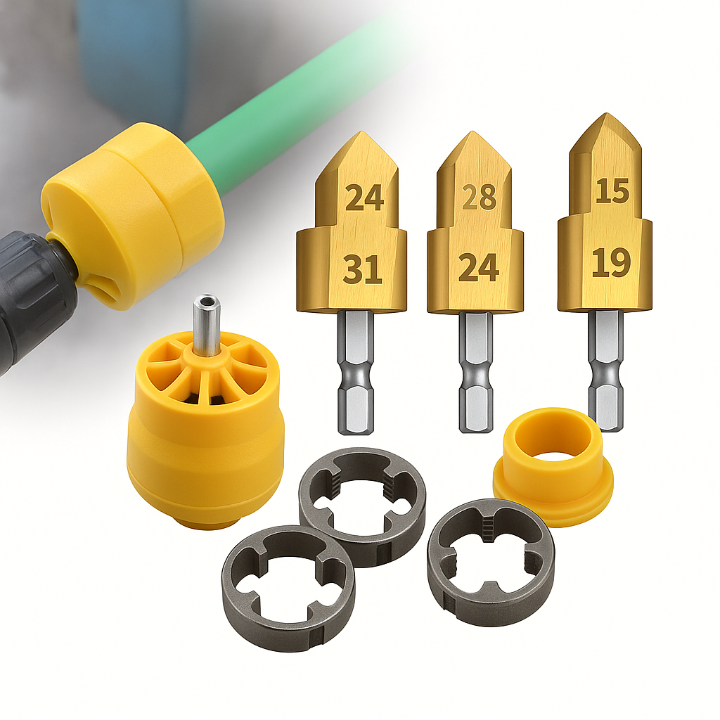 Megbízható és gyors szerszámra van szüksége PPR csövek módosításához és beállításához? Ez a professzionális készlet titán PPR emelőfúrókat kombinál vágó-, szélesítő- és rögzítőszerszámokkal - mindent egyetlen komplett csomagban, amire szüksége van.
