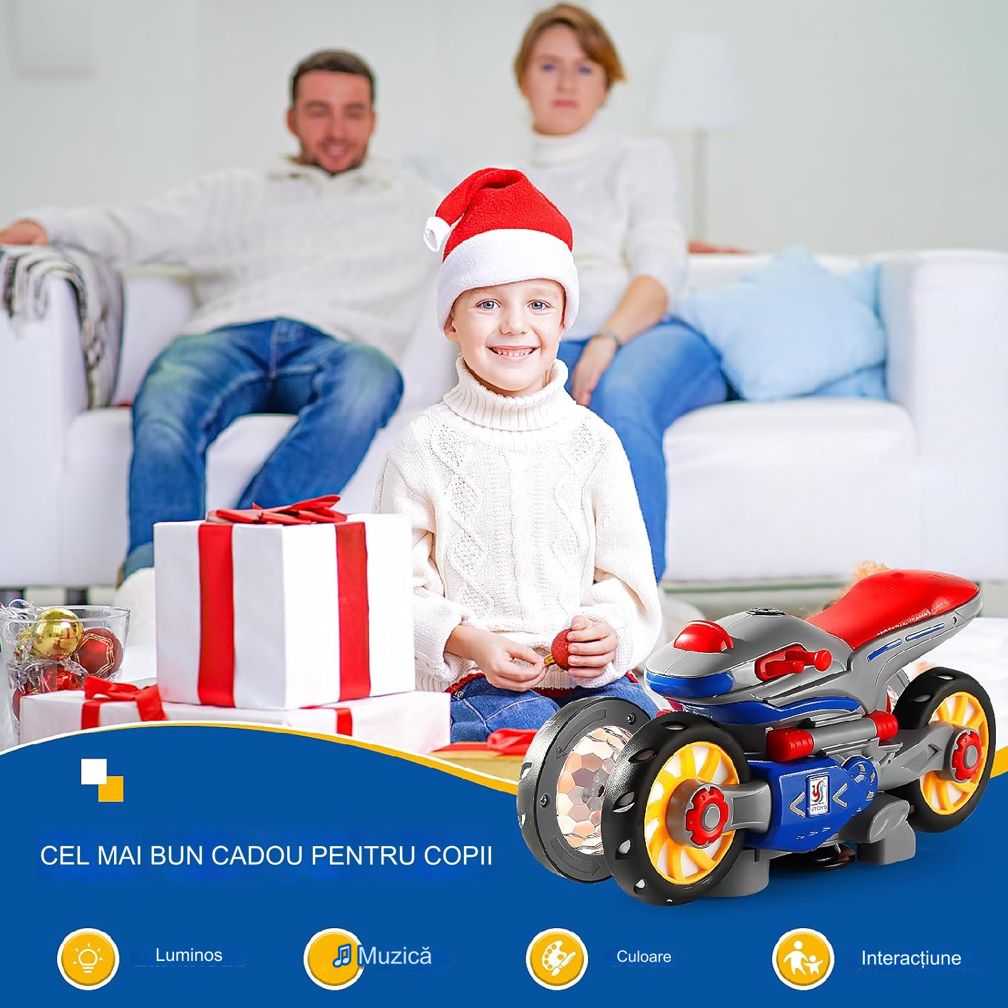 【Biztonság és innováció】 Ez a gyermekjátékautó kiváló minőségű anyagokból készült, így a motorkerékpár karosszériája erősebb és tartósabb. A fiúknak szánt játékautó vezetés közben automatikusan aktiválja transzformációs funkcióját, és mindkét oldalon felfelé billenti a motorkerékpár kerekeit. Így tökéletes világító játék azoknak a gyerekeknek, akik szeretnek új dolgokat felfedezni és felfedezni.