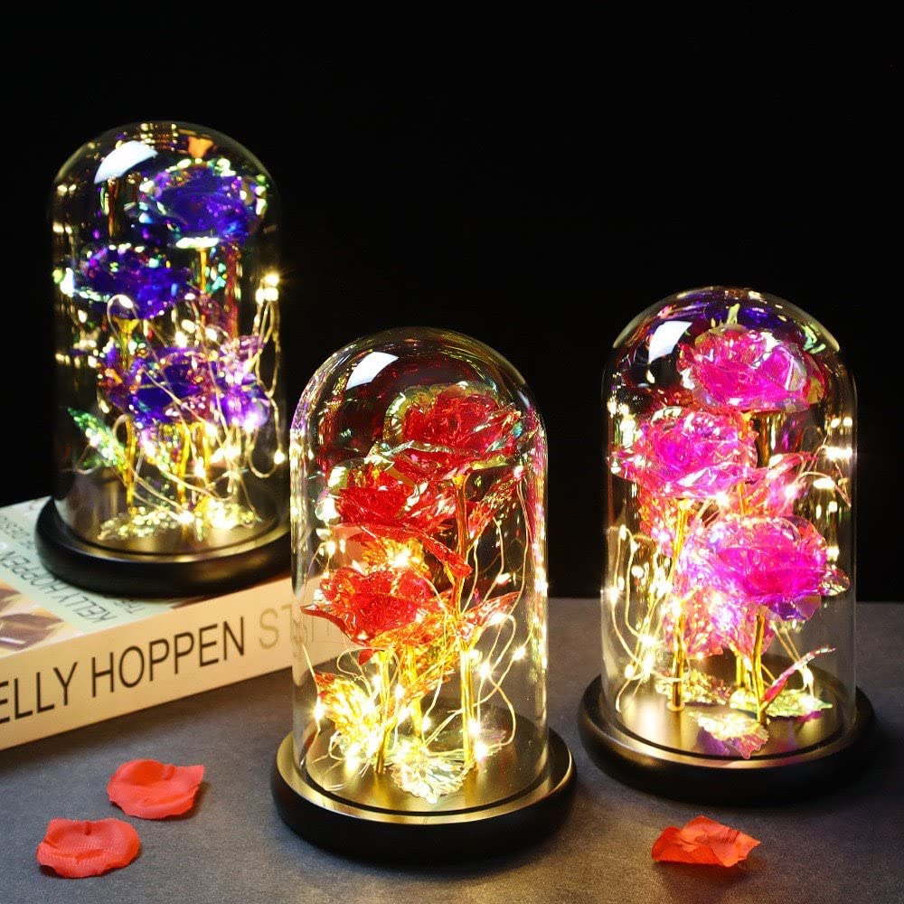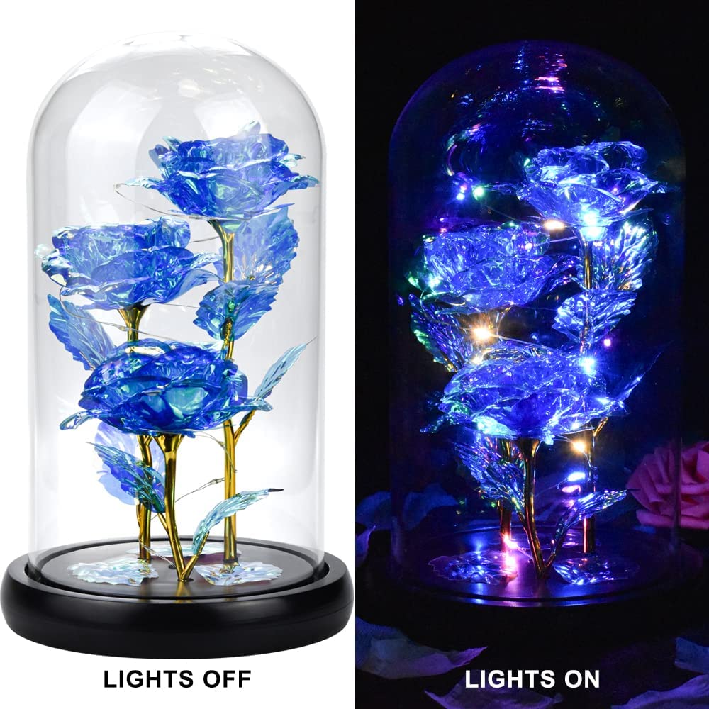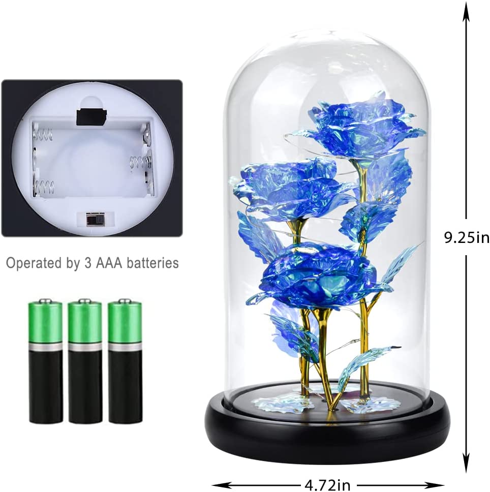 - Születésnapi ajándékok női lányoknak: Romantikus ajándékok nőknek, Az üvegborításban lévő színes rózsákat erős LED-lámpák veszik körül, amelyek olyan fényesek és vakítóak éjszaka, amelyek 3 db AAA elemmel működnek (nem tartozék). Csak kapcsolja be a kapcsolót, hogy sötétben meleg fényt bocsáthasson ki az üvegen keresztül. Teremtsen romantikus légkört, amely melegnek és boldognak érezheti magát.