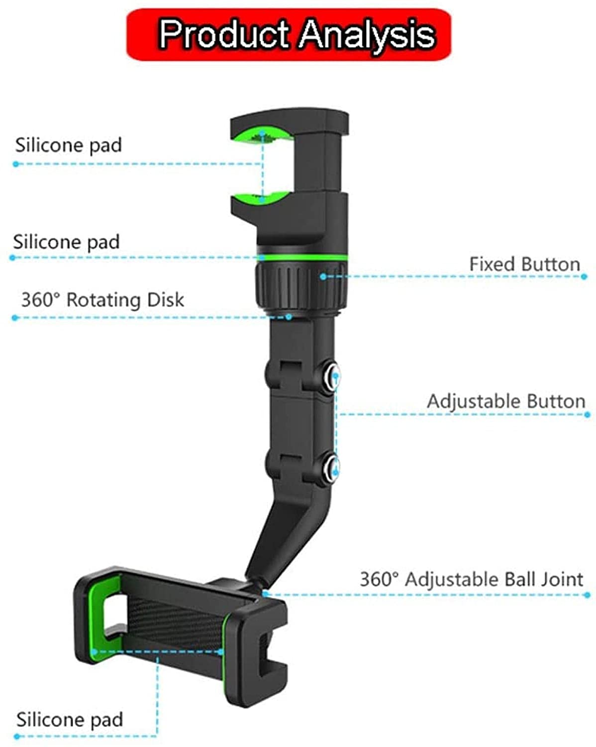 - Széles körben kompatibilis: a legtöbb automata és kézi vezetésű autóhoz alkalmas, szinte minden mobiltelefonhoz alkalmas. Alkalmas autós visszapillantó tükörhöz, konyhában főzéshez, drámák nézéséhez az ágyban.