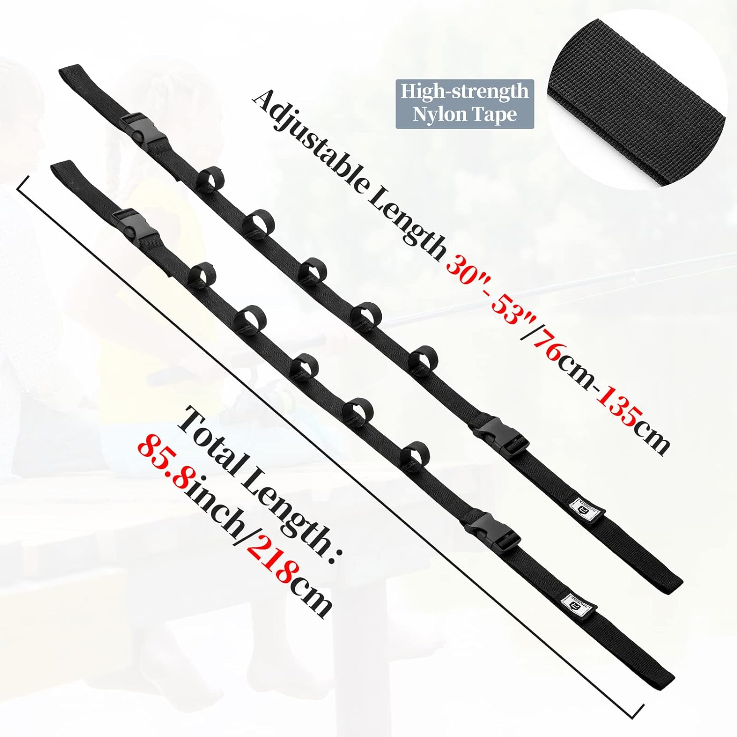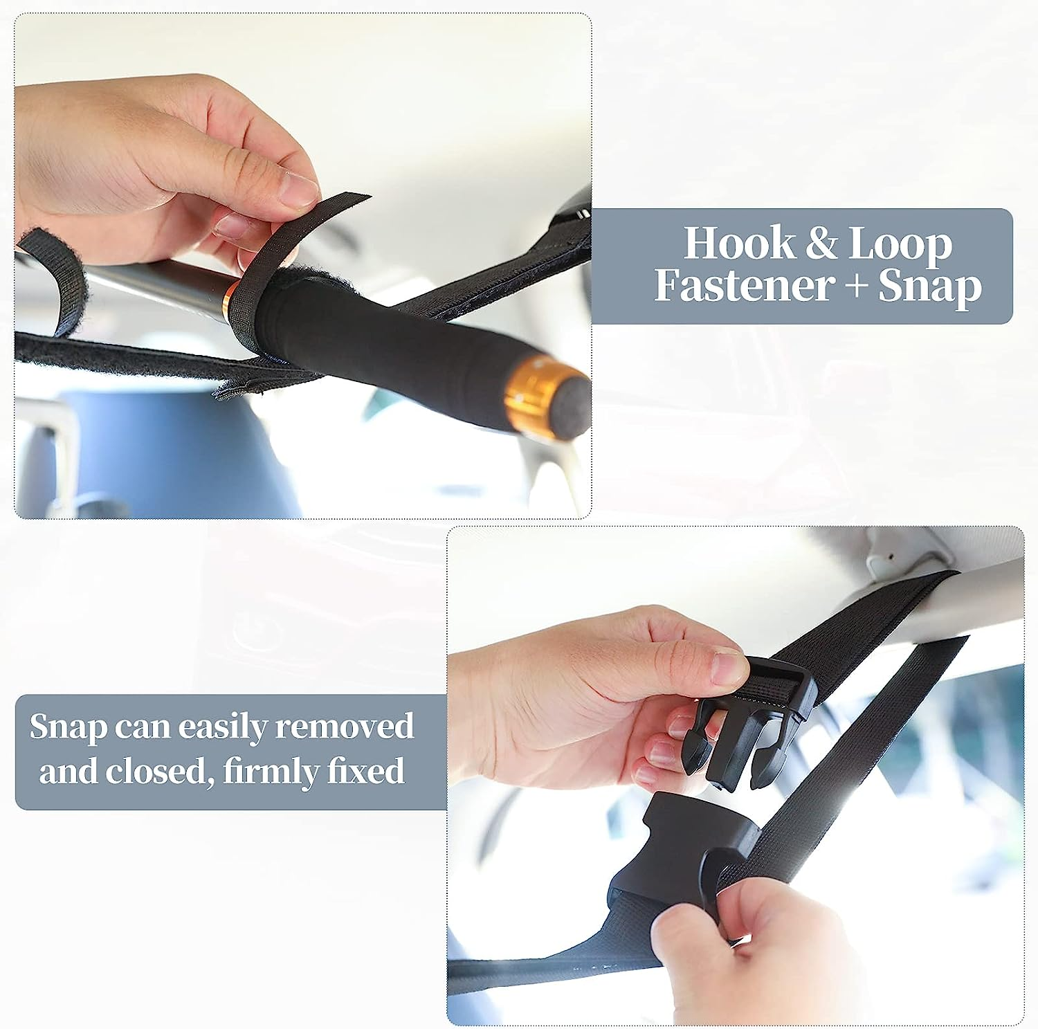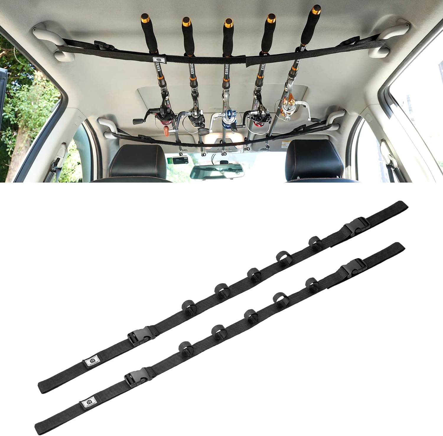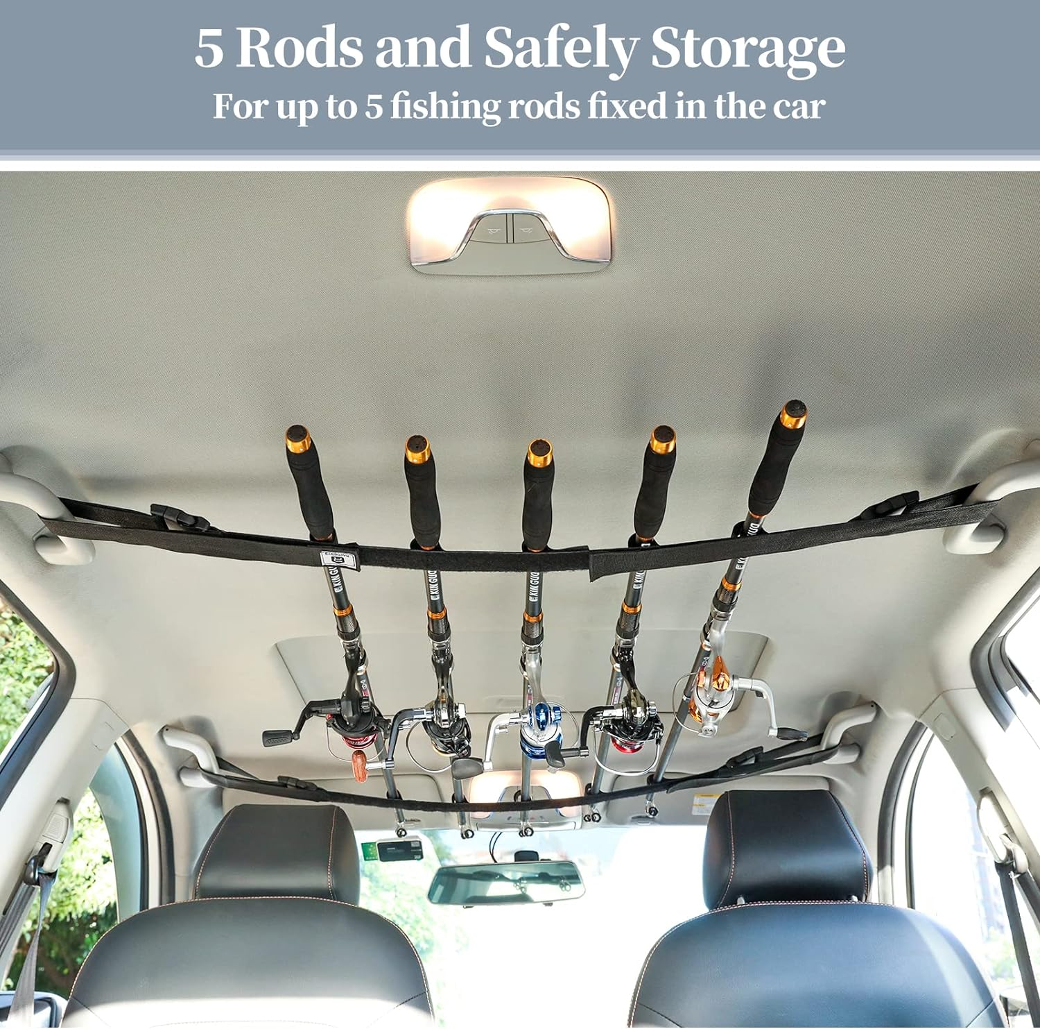 - Állítható botszíjak: A bottartó teljes hossza 85,8 hüvelyk, 30" és 53" (76 cm - 135 cm) között állítható, alkalmas a legtöbb négy fogantyús teherautóhoz és személyautóhoz, akár 5 horgászbot is elfér benne.