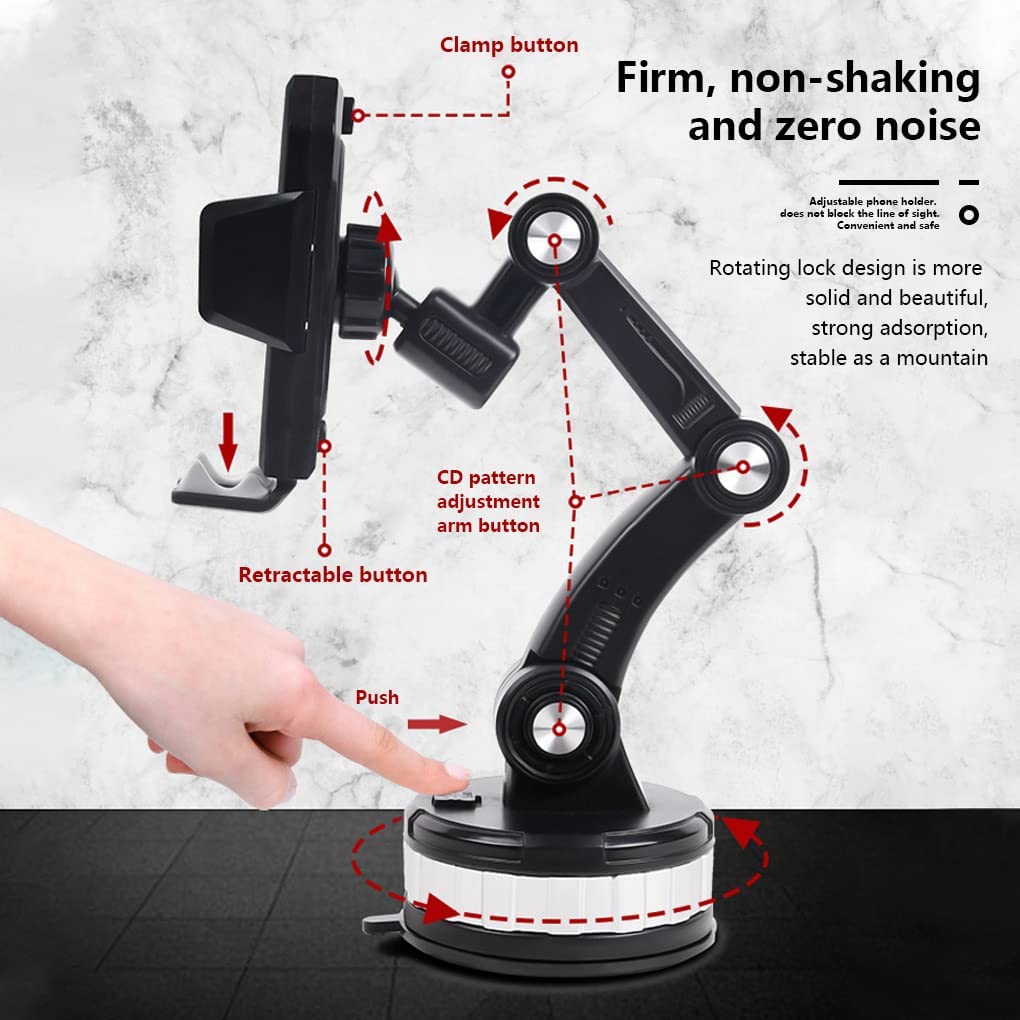 - Erős szívás: A nagy tapadókoronggal és a forgó zárszerkezettel ez az autótelefon-tartó erősen felszívja a műszerfal felületét, és nem könnyű leesni