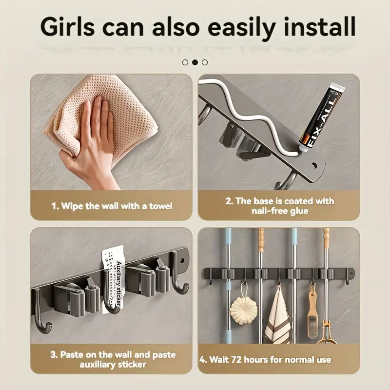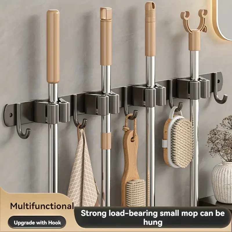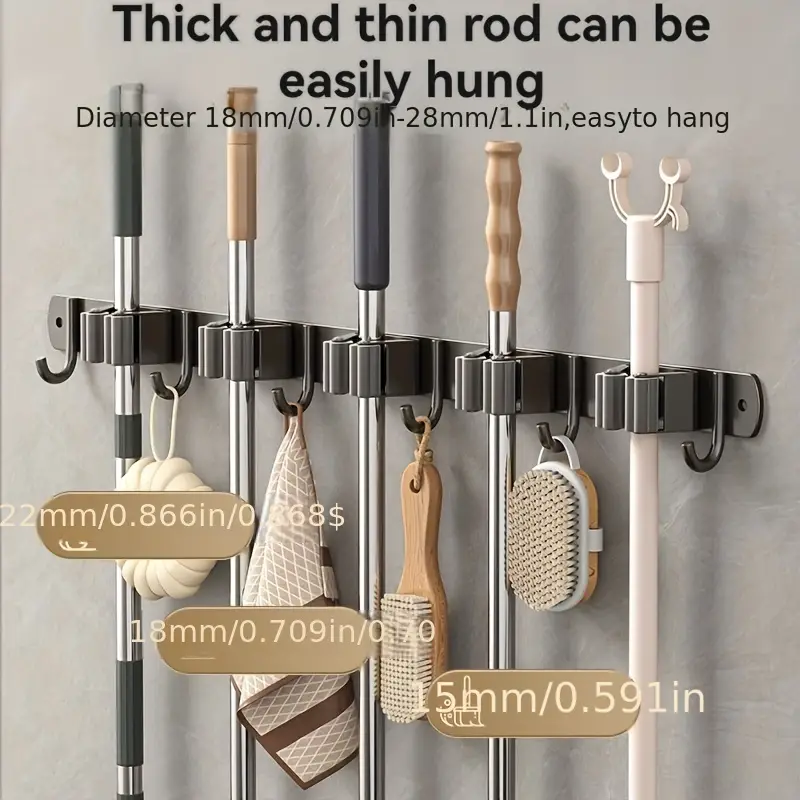 Sokoldalú használat: Ideális felmosók, seprűk, kerti szerszámok és egyebek rendszerezéséhez. Különféle helyekre alkalmas, mint például konyha, fürdőszoba, garázs, pince, háztartási helyiség, kert stb.
