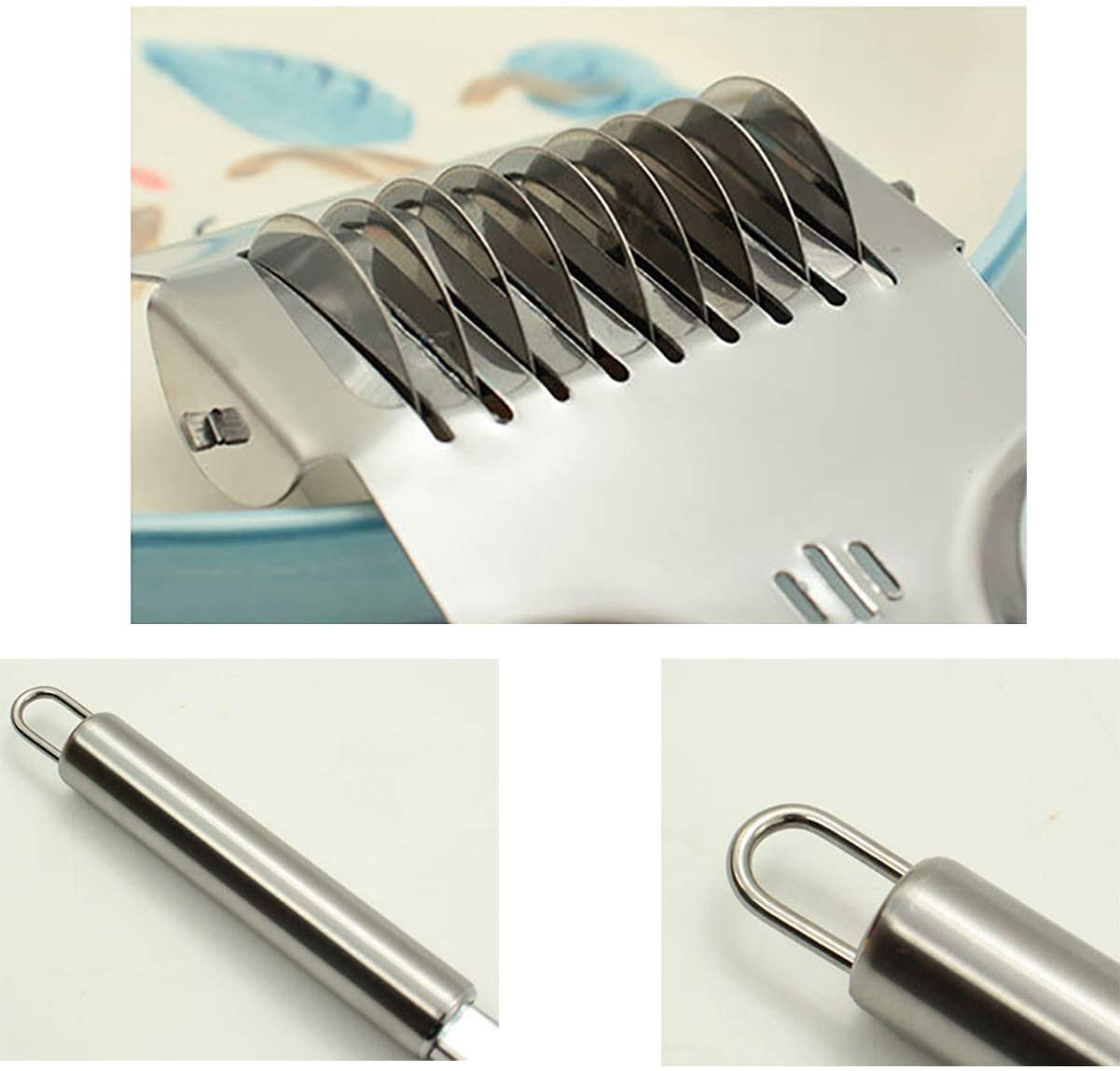 - A tésztavágóval tészta vágására, petrezselyem vágására, fokhagyma vágására, gyömbér vágására, fokhagyma, koriander, gyömbér, fűszernövények és egyéb zöldségek elnyomására is használható.