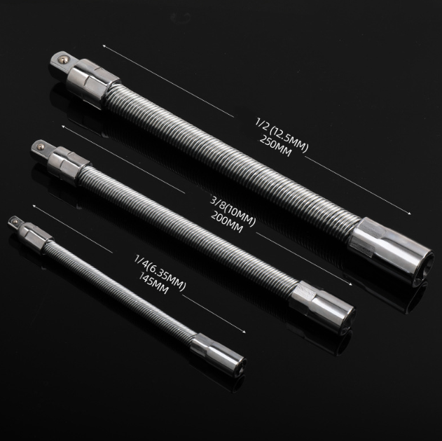 A szakemberek a rugalmas hosszabbítórudakra számítanak , hogy gyorsan meglazítsák a csavarokat és anyákat kényelmetlen szögben és nehezen elérhető helyeken a könnyű forgatónyomaték-alkalmazások érdekében.
