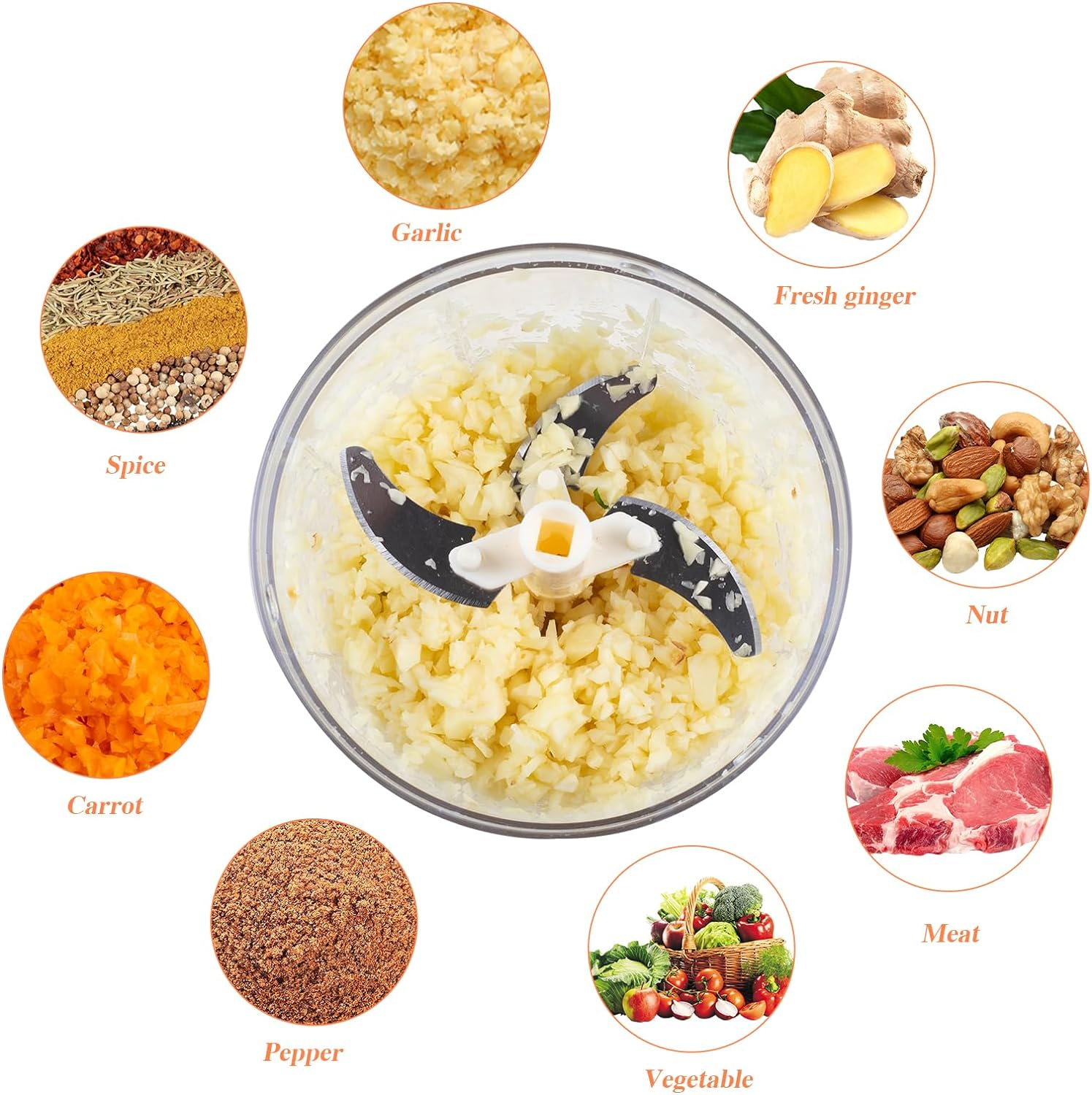 - A hagyományos fokhagyma aprítóhoz képest ez a többfunkciós tartályos aprító egyszerre több gerezd fokhagyma aprítására is alkalmas. Könnyen használható és erőfeszítést takarít meg. Könnyen tisztítható, és sok zöldséget és fűszert feldarabolhat, mint például hagyma, paprika, dió, sárgarépa, burgonyapüré, zeller, paradicsom, koriander stb. A kis méret miatt az élelmiszert feldolgozás előtt darabokra kell vágni.