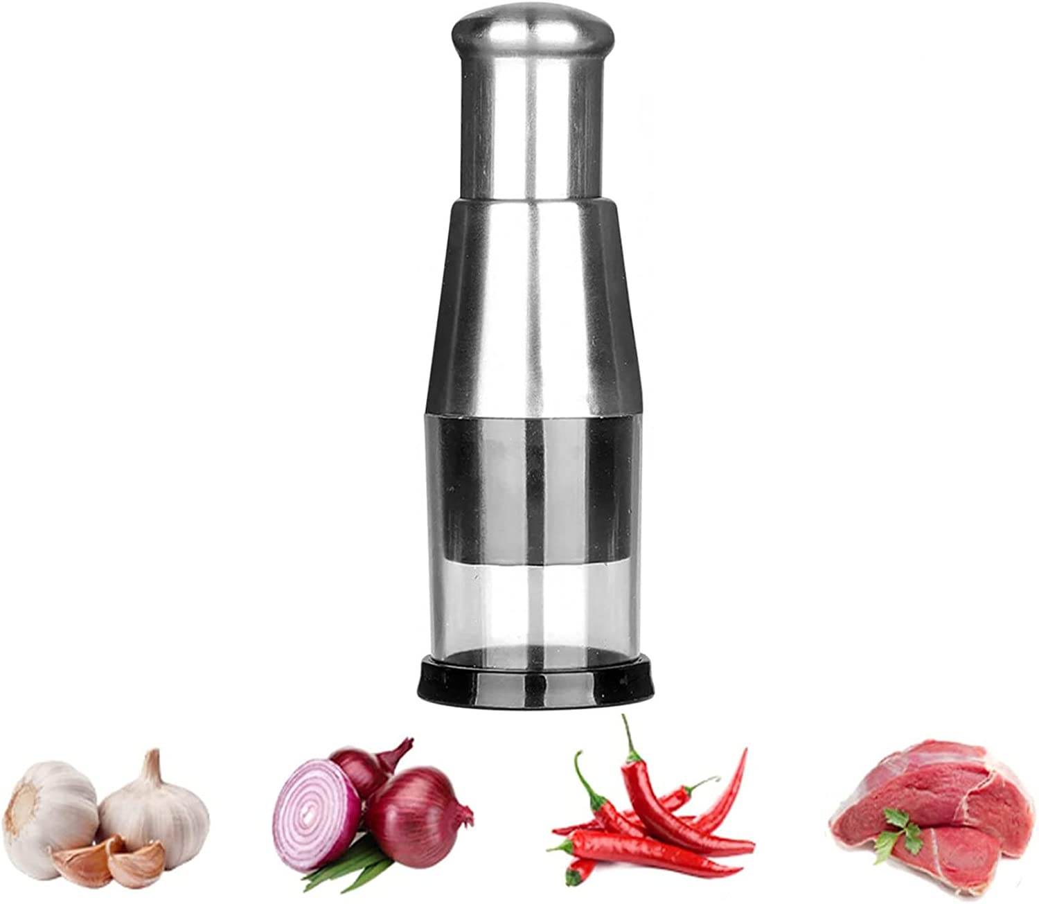 - Kiváló minőség - A hordozható élelmiszer-aprító rendkívül tartós rozsdamentes acélból, tartós műanyagból és gumi talpból készült. Használja az aprítót az alappal vagy közvetlenül a vágódeszkán – Ön választja!