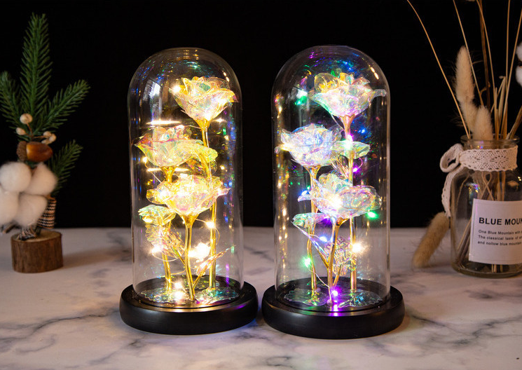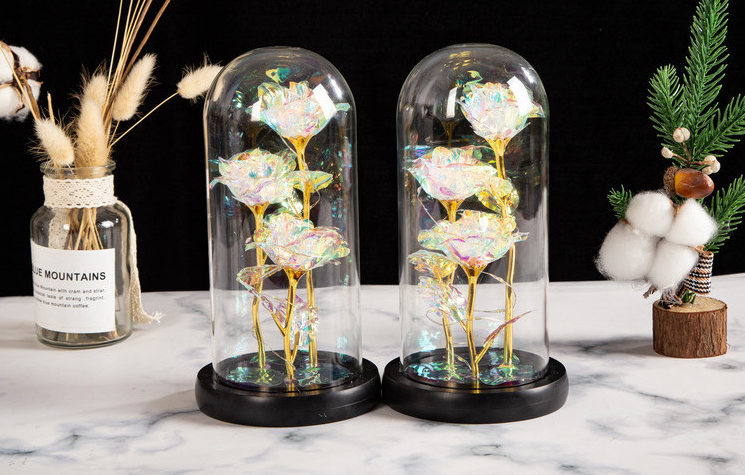 Egyedi ajándék lehet szeretteinek, ez az üvegkupola felnyitható és más ajándékokat is elhelyezhet, amiket át szeretne adni neki, mint például gyűrűk, nyakláncok, fülbevalók stb. Családjának vagy barátjának karácsonyra, Valentin-napra, születésnapra, ajánlattételre stb. Egyedi ajándék egyedinek. Remek dekoráció a nappaliban, hálószobában, dolgozószobában stb. Ragyog és virágzik, melegséget és szeretetet áraszt az egész házban.