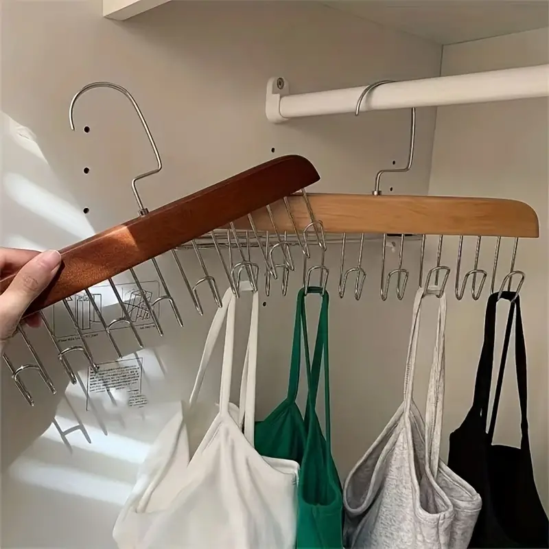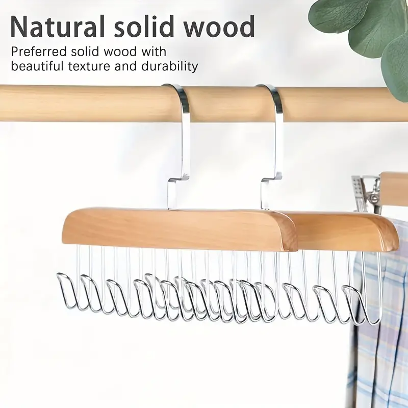 - Fából készült akasztók: A 360 fokban elforgatható akasztóval ellátott övrendező lehetővé teszi, hogy az akasztót könnyedén oldalra fordítsa a tárgyak kiválasztásához. Ideális övek, nyakkendők, pénztárcák, sálak, nyakláncok és egyéb ékszerkiegészítők felakasztására.