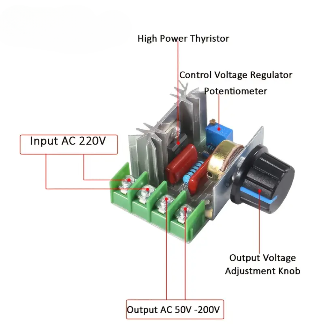 - Folyamatos AC feszültségszabályozás: Precízen szabályoz 50V és 200V között (AC 220V bemenet)