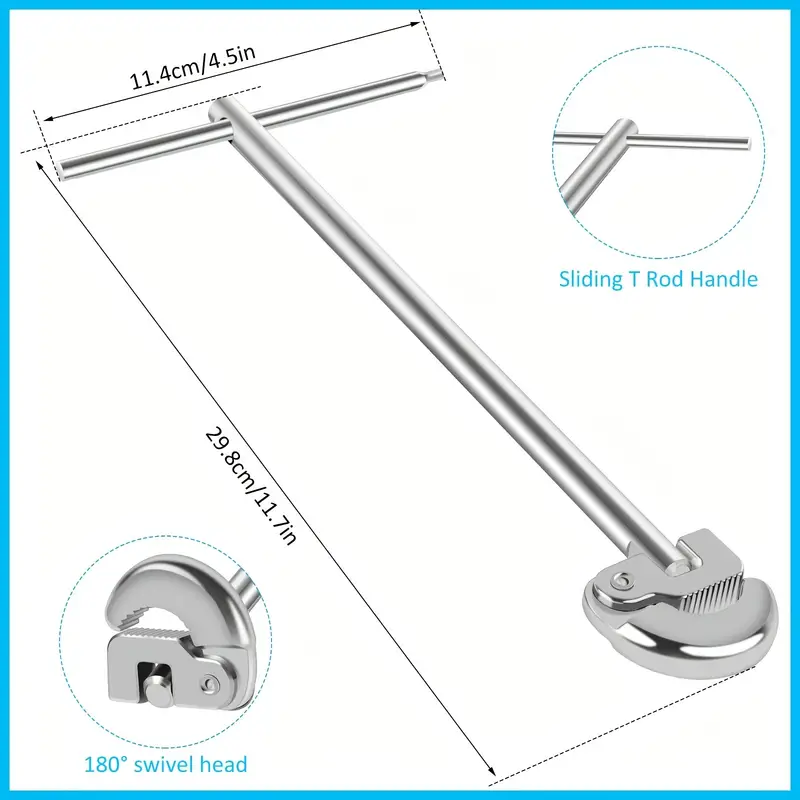 A T-fogantyú lehetővé teszi az egykezes vagy kétkezes használatot a nagyobb teljesítmény érdekében. A csúszó tengely kiváló manőverezhetőséget biztosít, a racsnis mechanizmus pedig folyamatos forgatást tesz lehetővé a szerszám felemelése nélkül.